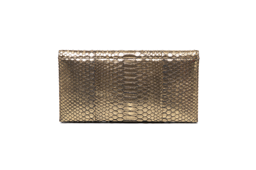 This python clutch is timeless and classic. It is sleek and beautiful and can be worn with jeans or with an evening dress. It comfortably fits a cell phone, lipstick, keys, and credit cards. The bag comes with a detachable chain shoulder strap measuring 25" (drop 17"). The gold plated snake hardware is made with Swarovski Crystals. Each of our bags is lined with lavender suede and contains an inside pocket perfect for credit cards. This bag contains a magnetic closure.