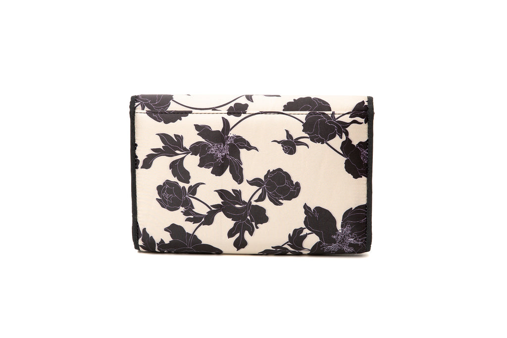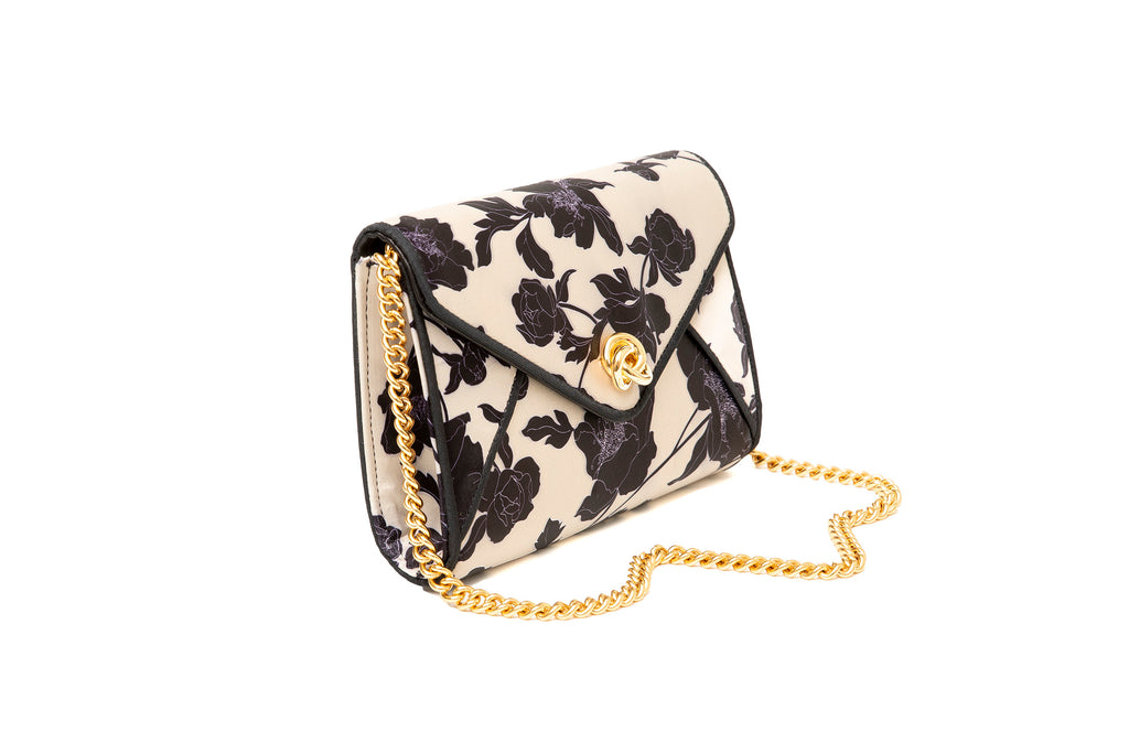 This beautiful evening fabric clutch has a side gusset so it can comfortably hold all of your essentials including the iPhone Max! It can be carried as a clutch or a shoulder bag. This bag comes with a detachable chain shoulder strap measuring 25" (drop 17"). The gold plated knot hardware is a signature classic. Each of our bags is lined with lavender suede and contains an inside pocket perfect for credit cards. This bag contains a magnetic closure.